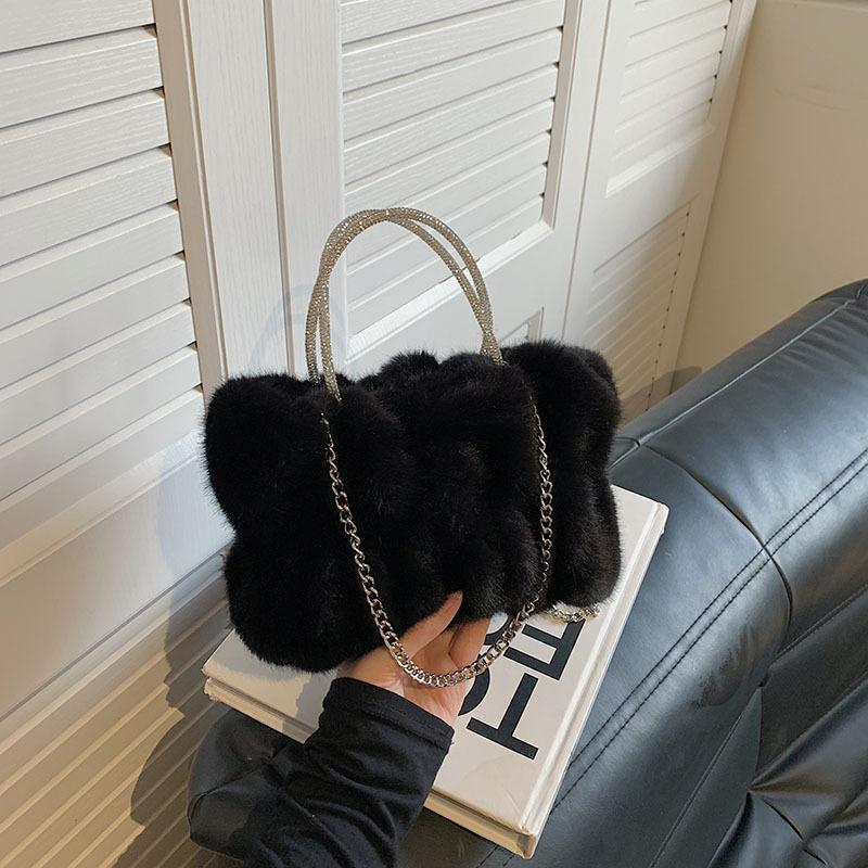 Портативная плюшевая маленькая женская сумка 2024 года, новая модная пушистая сумка-облако, высококачественная сумка-мессенджер с цепочкой чёрный