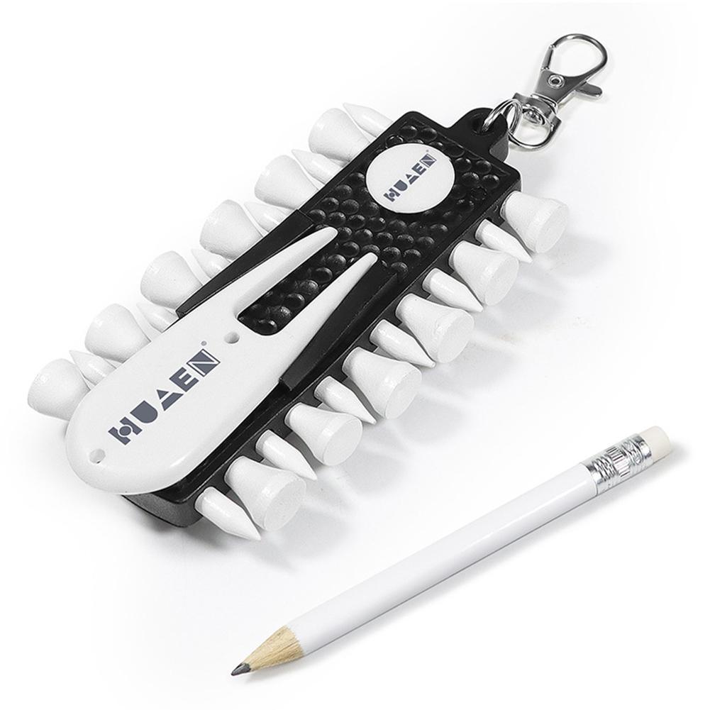 Портативная стойка для хранения гольф-оборудования включает гольф-шипы, зеленые вилки, ручки для подсчета очков с крючком
