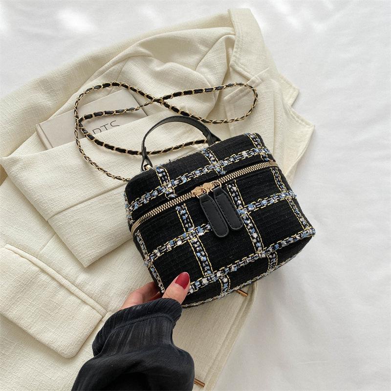 Портативная сумка-ведро женская осень 2024 года, новая модная сумка с цепочкой из бриллиантов, повседневная модная сумка-мессенджер Xiaoxiangfeng Small чёрный