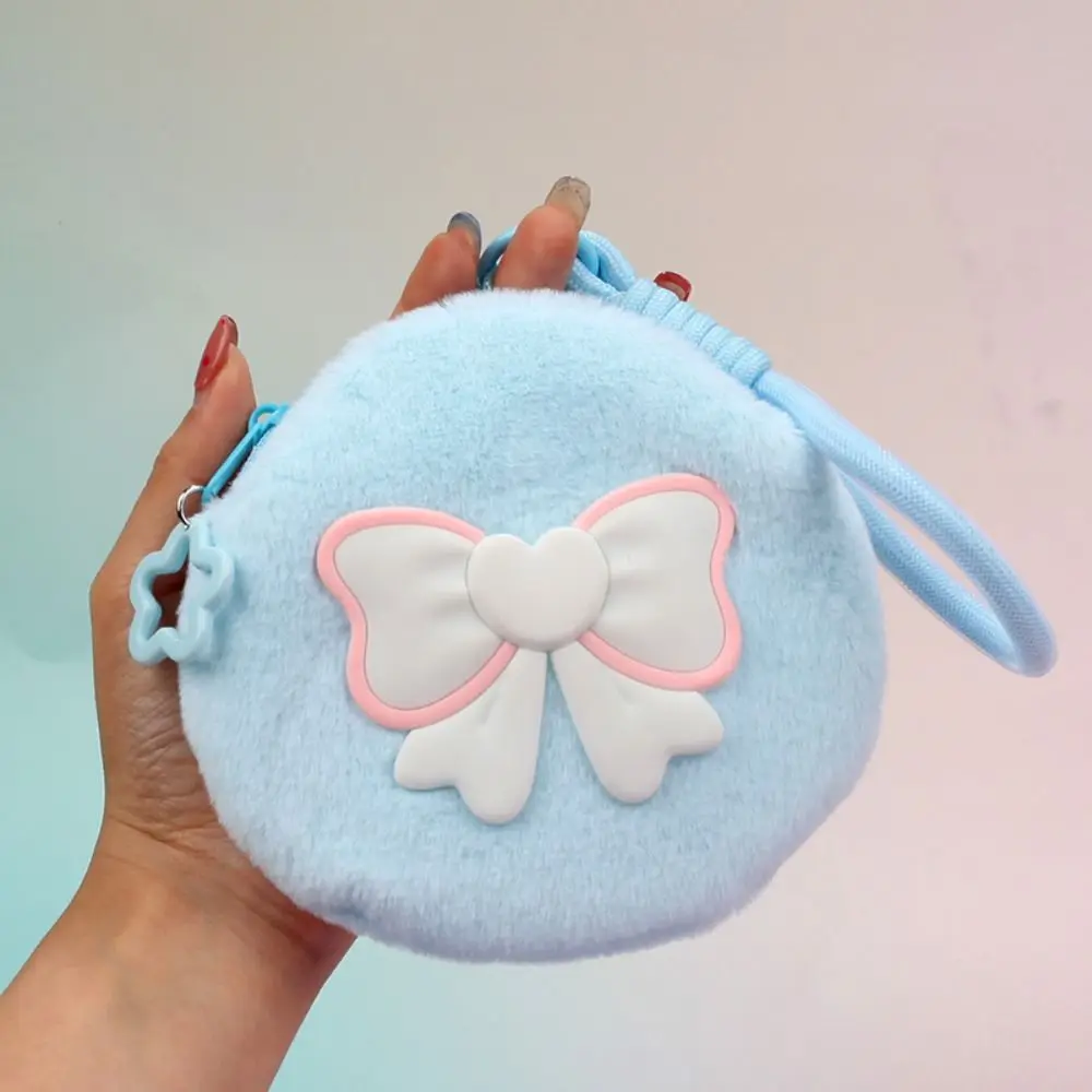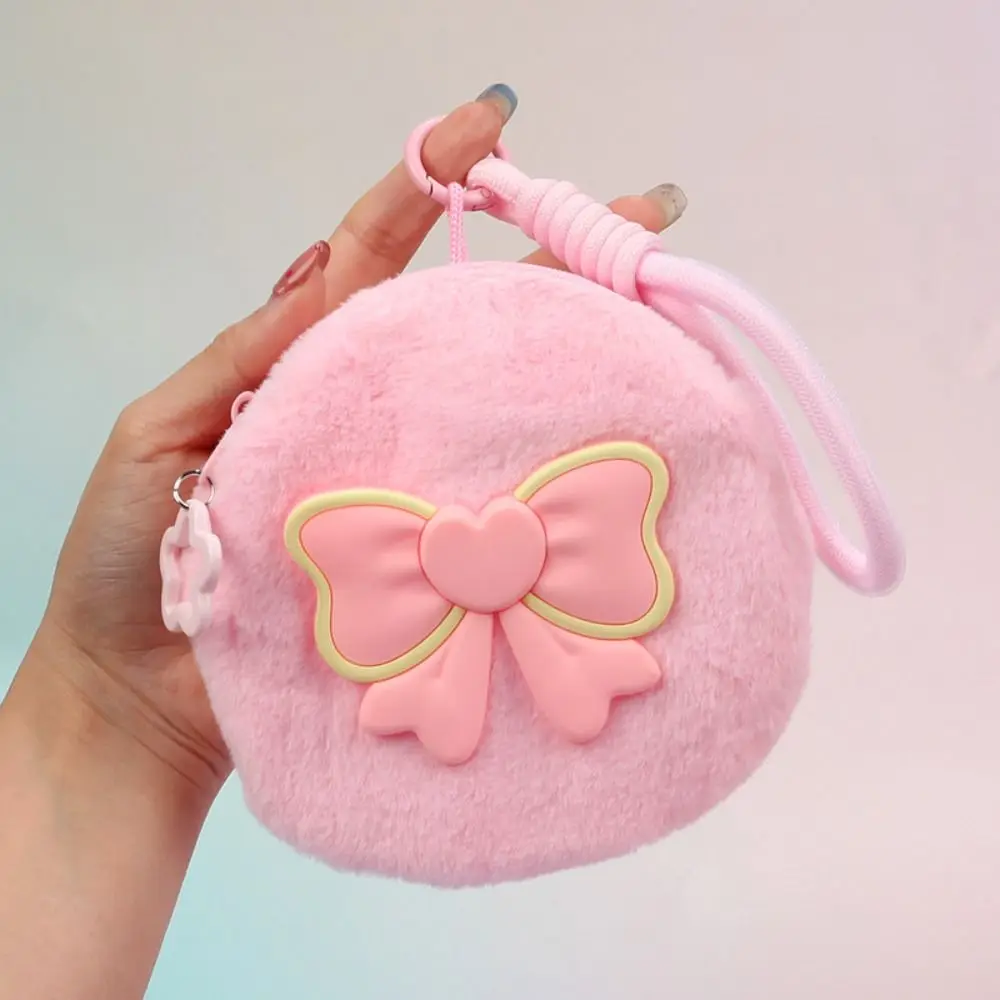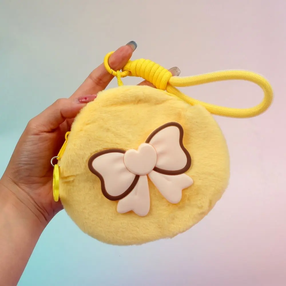 Портативная сумка для хранения на запястье с бантом, плюшевый однотонный маленький кошелек, мягкая молния, мини-сумка для ключей для наушников