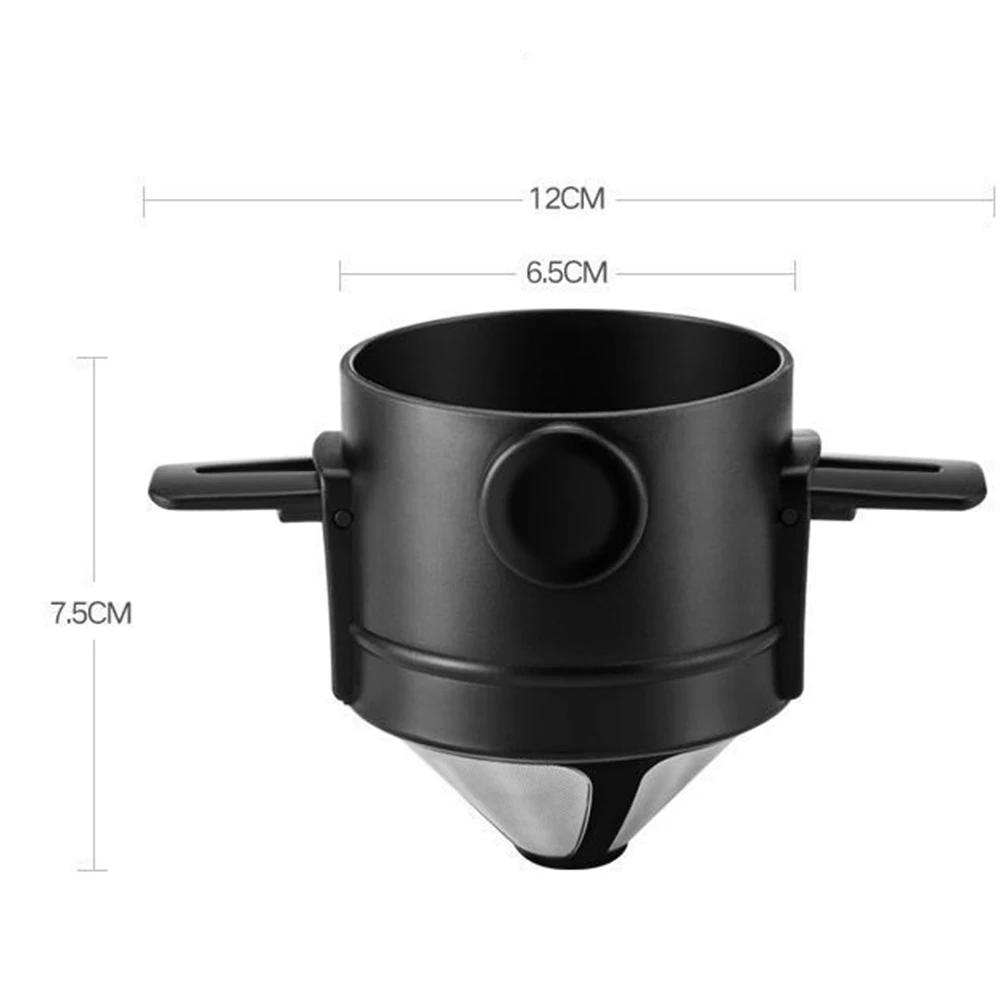 Портативная чашка-фильтр для кофе с креплением на ухо, из нержавеющей стали, фильтр для кофе ручной заварки, складная воронка-фильтр без фильтра чёрный