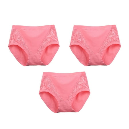 3 Pieces Women Briefs Solid Color Washable Portable Reusable Knitted Breathable Girls Lingerie Panties Underwear Pink 5XL