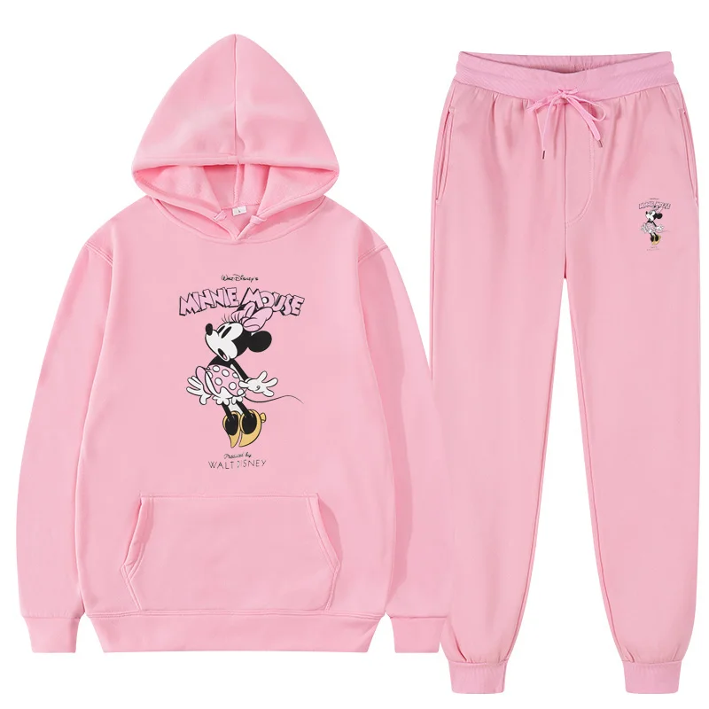 Спортивная одежда Disney Минни Маус, модная мультяшная Женская толстовка из 2 предметов с принтом + штаны, спортивный костюм, женская одежда, мужские комплекты