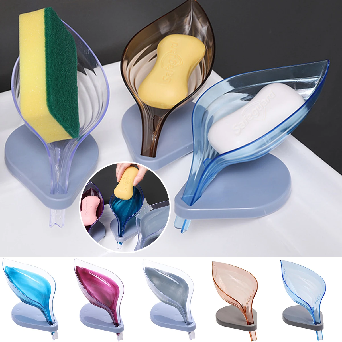 Портативный мыльницы мыло держатель слив Коробка для мыла лист Форма дренаж часы с чашкой на присоске для ванной мыльница