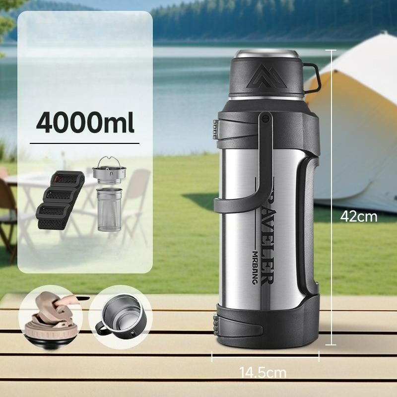 Портативный термос-чайник, термос-чайник из нержавеющей стали большой вместимости, уличный портативный термос сверхбольшой вместимости 4000ML серебряный