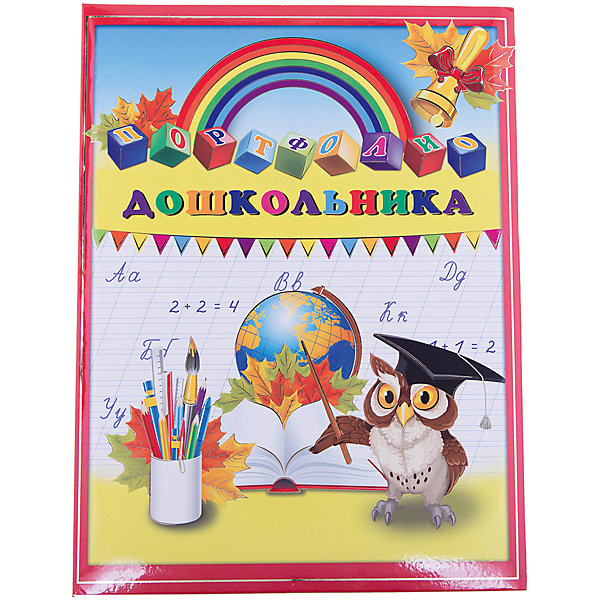 Портфолио дошкольника ГЛОБУС И СОВА (240*325мм, внутренний блок: 20 файлов ПВХ,15 листов-мелованная бумага, плотность 130г/м2. Твердая картонная обложка с поролоновой прослойкой, под глянцевой ламинацией, украшенная тиснением фольгой)