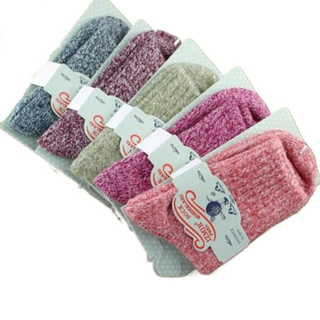 5 Pairs Women Vintage Wool Cashmere Thick Winter Warm Soft Casual Sock Over Ankle High Socks Sets