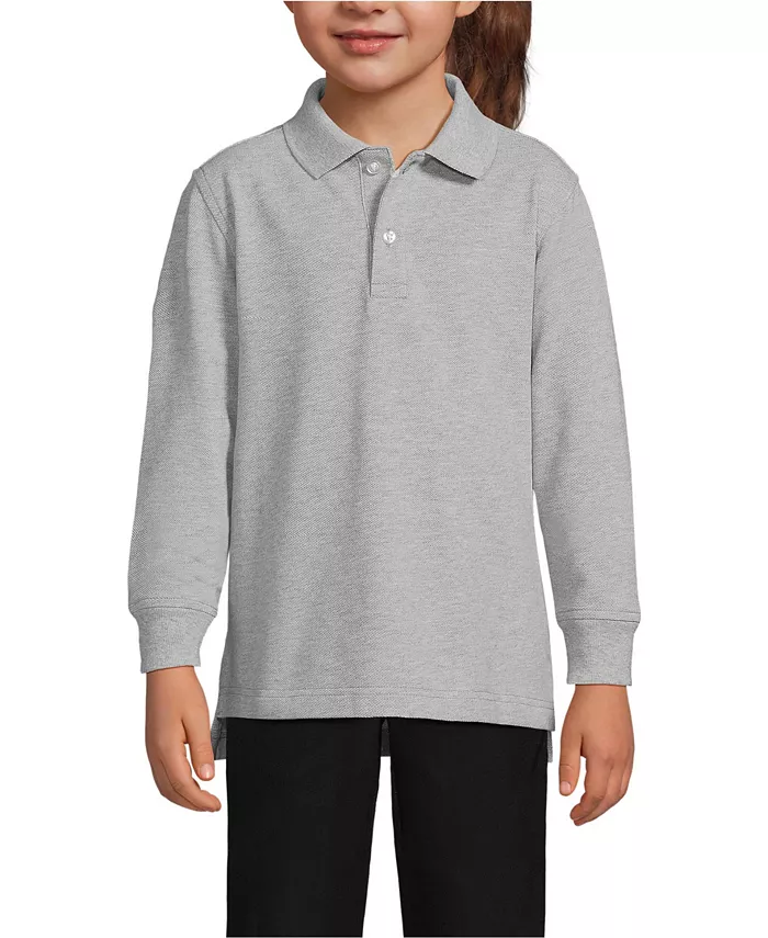 Школьная форма для детей: поло с длинным рукавом из сетчатой ткани Lands' End, серый