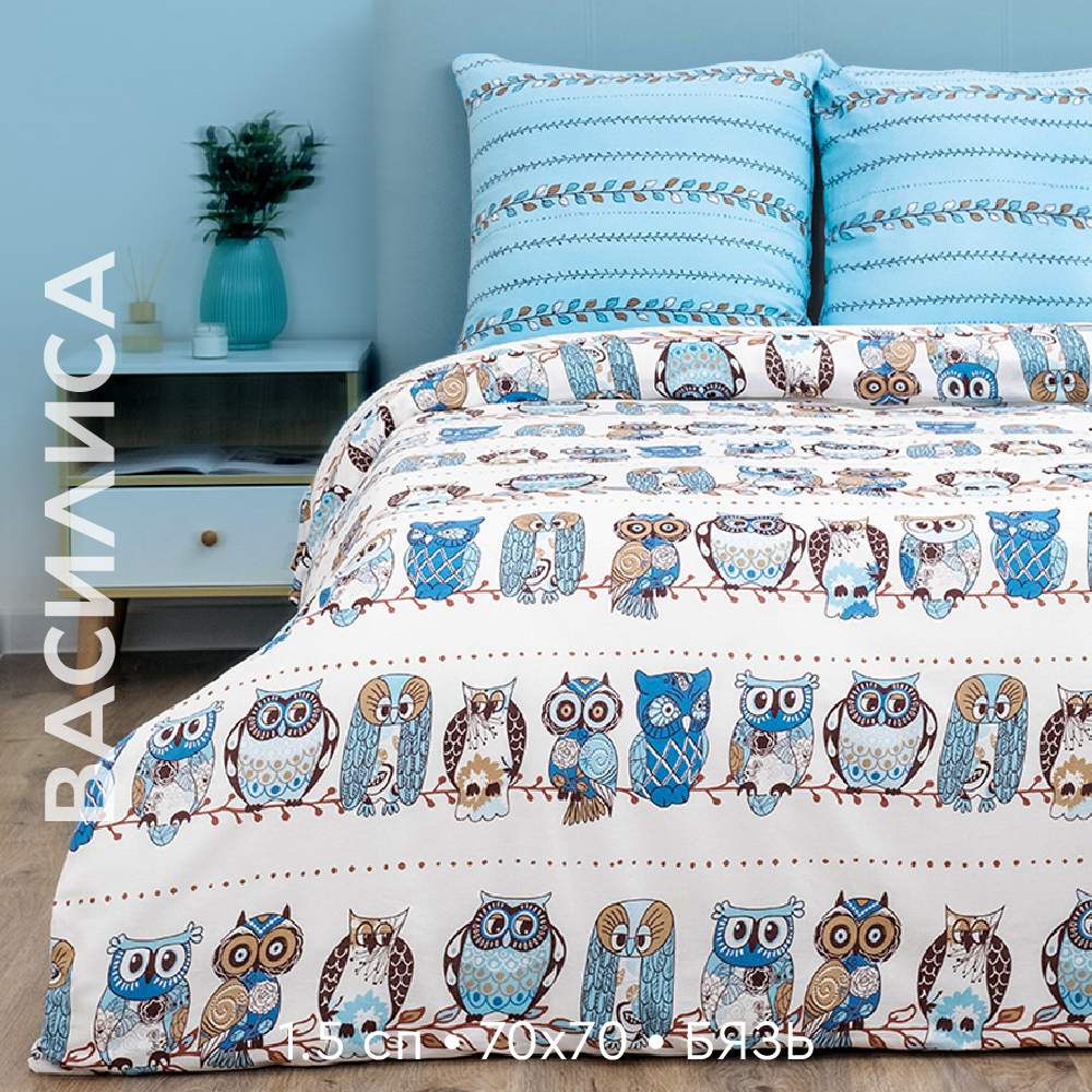 Постельное белье Василиса из бязи 1,5 спальное, наволочки 70х70 см, 7184 ,Совы, В-1