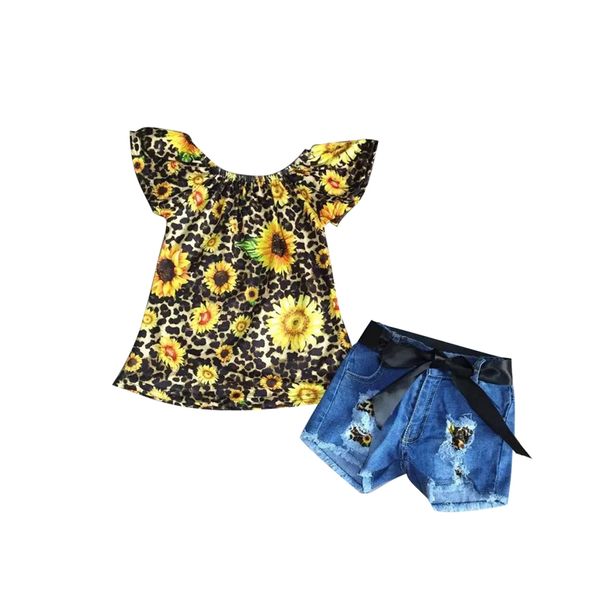 kids clothing baby girl clothes floral print flutter sleeve with jean shorts, White