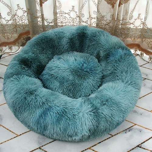 Постельное белье Круглая плюшевая кровать для собак из искусственного меха (розовая, 16 дюймов)