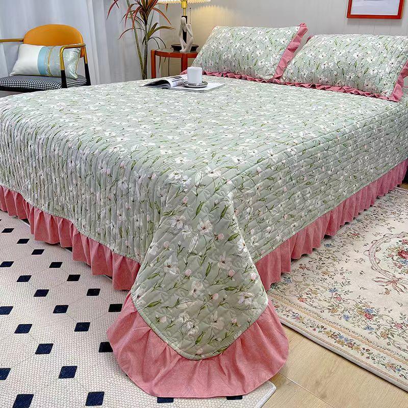 Постельное белье Стеганая юбка из стираного хлопка Наволочка из трех частей Утолщенные нескользящие простыни Четыре сезона Универсальные 220*240cm