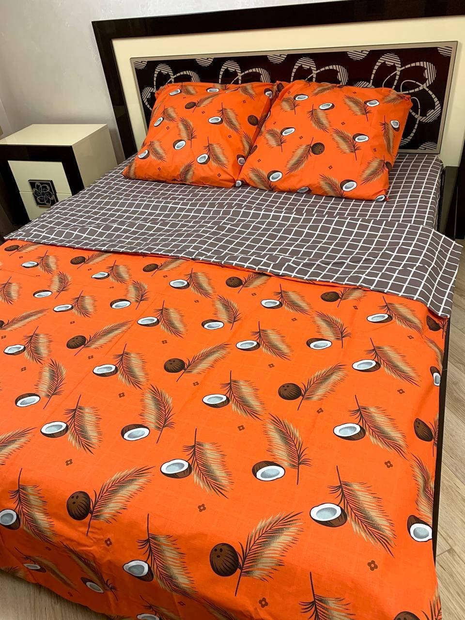 Комплект постельного белья яркий оранжево-коричневый с кокосами, украсит вашу комнату. Подойдет как для детской, так и взрослой спальни.