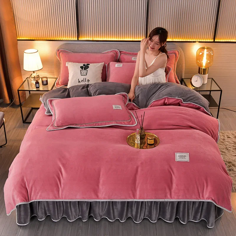Постельное белье из молочного бархата, Комплект постельного белья из четырех предметов, зимнее утолщенное постельное белье из кораллового бархата, двухстороннее бархатное пододеяльник, фланель