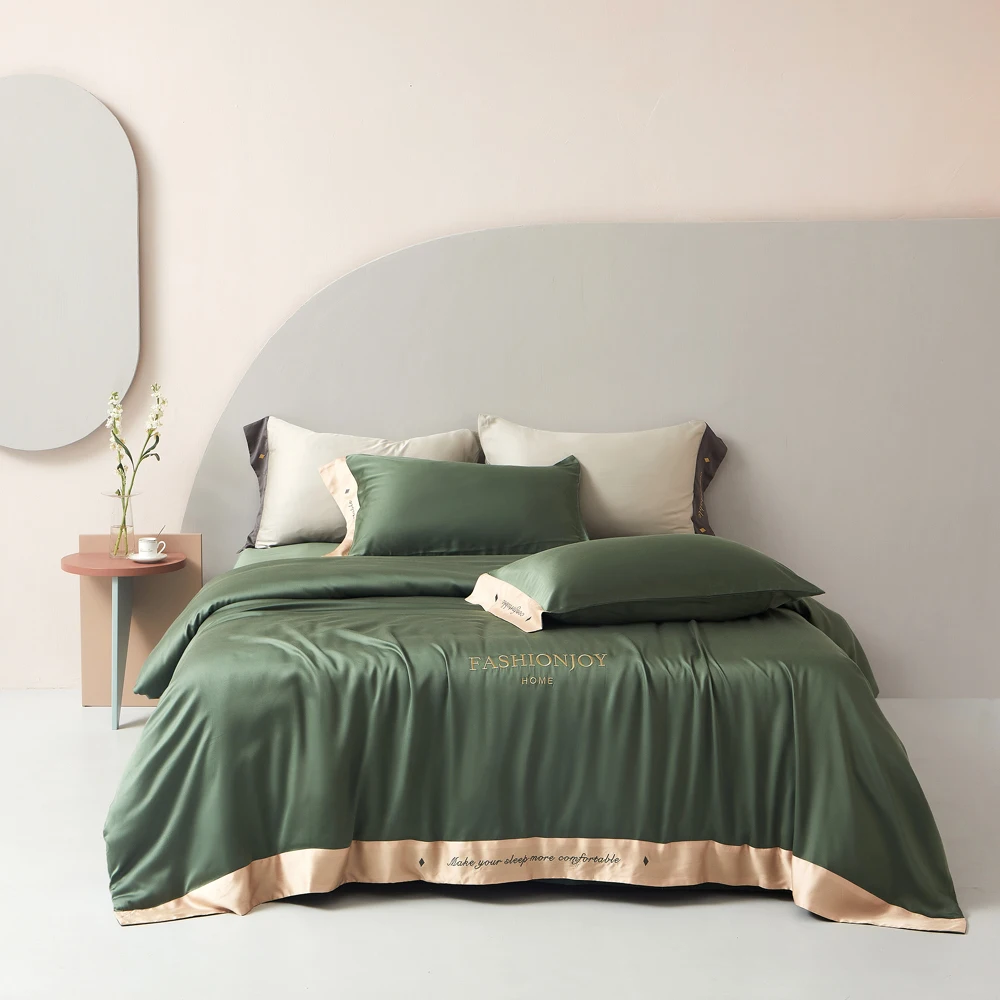 Постельное белье из четырех предметов, простое постельное белье из 100-процентно-целлюлозного лиоцеллозного волокна, пододеяльник с вышивко...