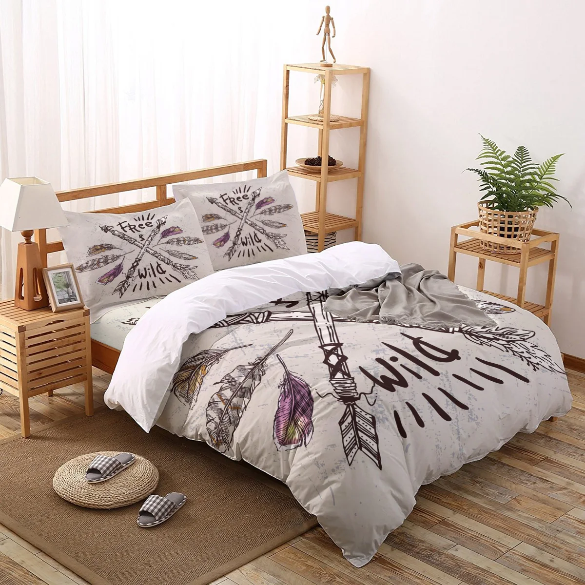 Постельное белье со стрелкой из перьев в стиле ретро, Комплект постельного белья для спальни, простыня, наволочка, комплект пододеяльников