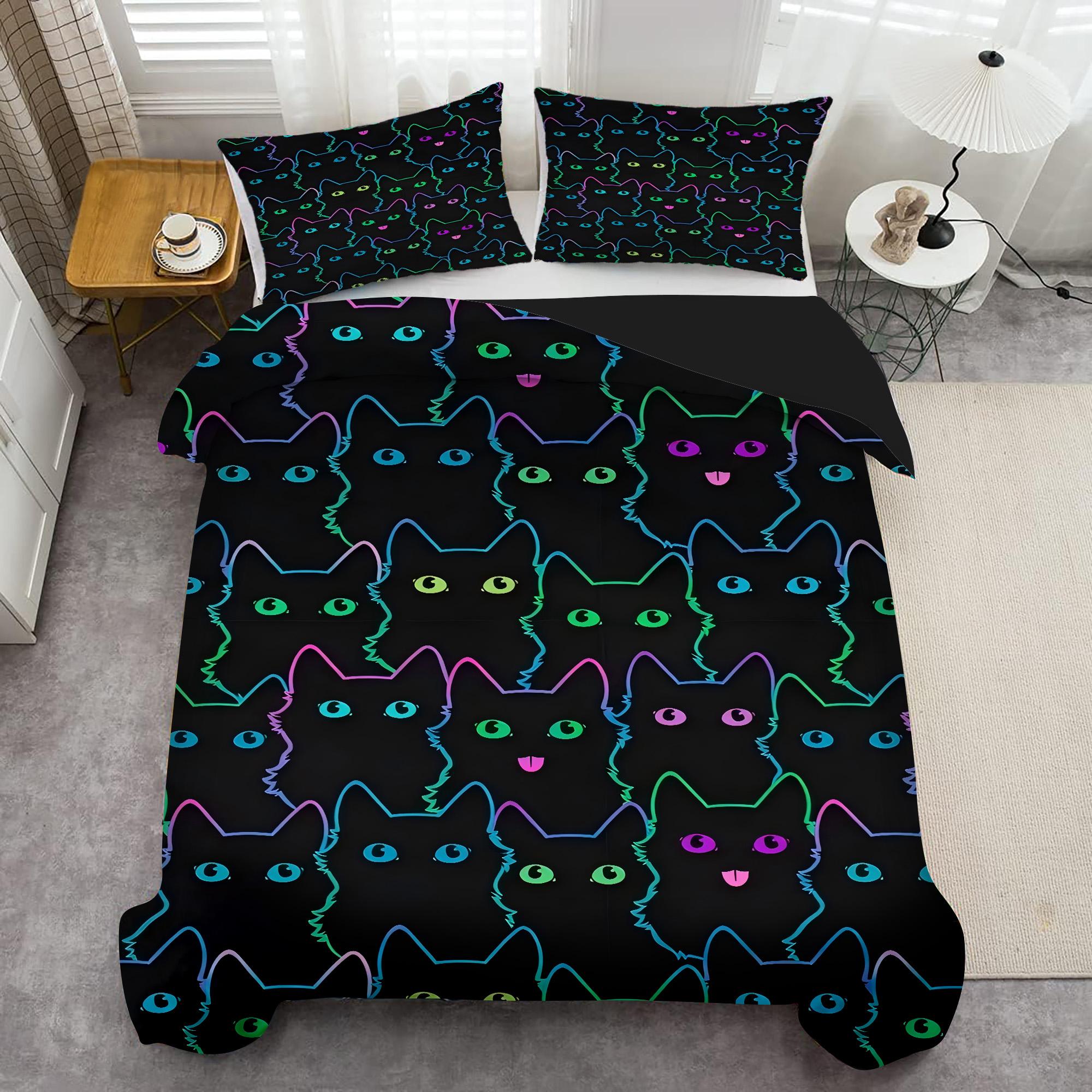 Постельное белье с градиентными линиями и 3D-принтом кошек, на тему животных, удобный пододеяльник, мультяшный кот, все сезоны, пододеяльник, наволочки 135x200cm 2pcs