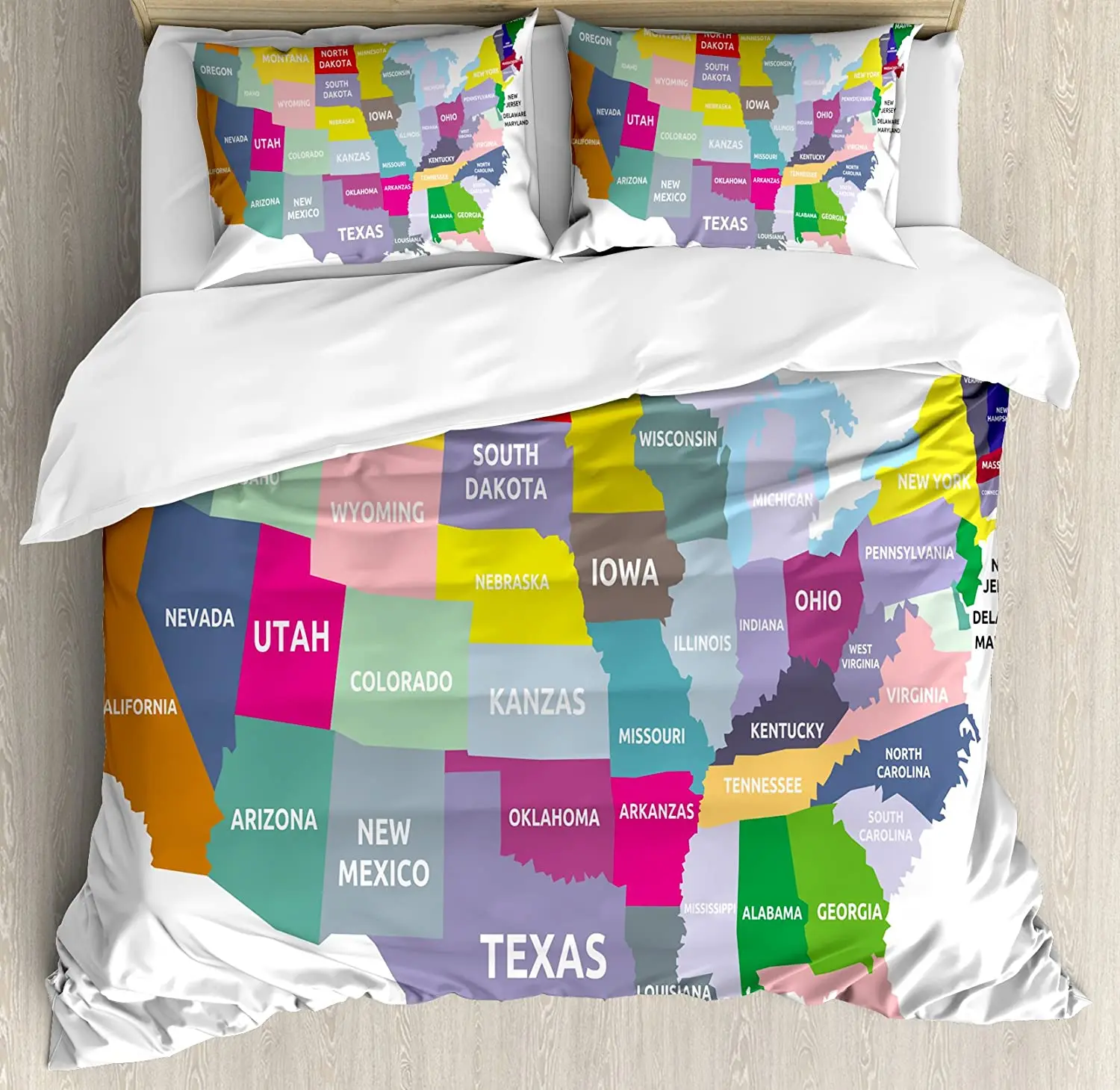 Постельное белье с картой для спальни, кровать, домашняя карта США с именем состояния в разных цветах, пододеяльник, пододеяльник, наволочка