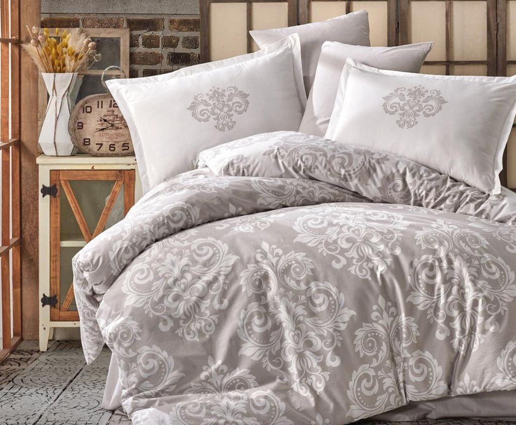 Постельное белье 240х220 см, комплект из 5 предметов, бежевый, 100% хлопок/ренфорсе, молния, Sade V2 Yadetextil