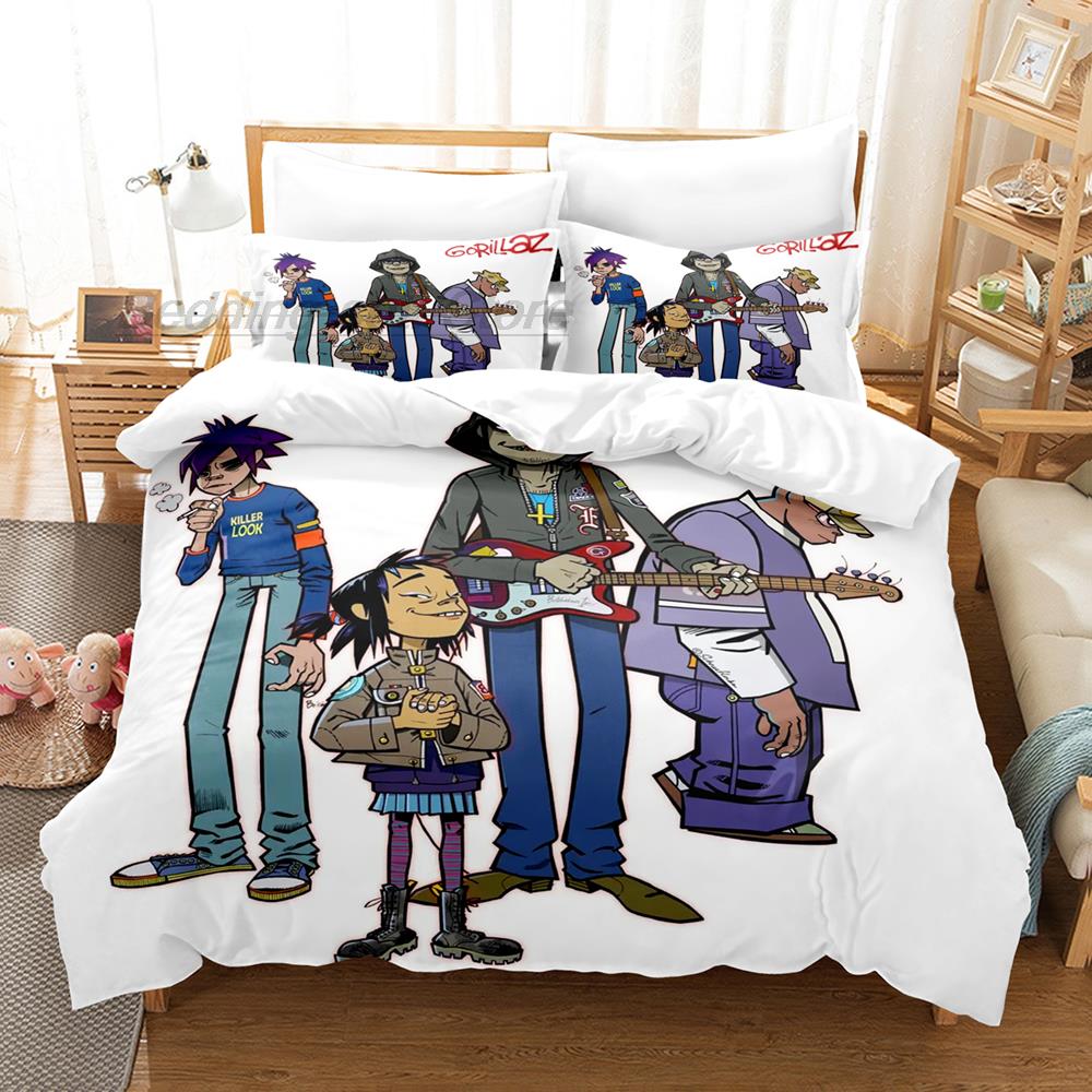 Постельное белье Gorillaz Односпальный Полуторный Двуспальный Кингсайз Комплект постельного белья Взрослый Детский Спальня Комплекты пододеяльников 3D-принт Gorillaz EU single(135x200cm)