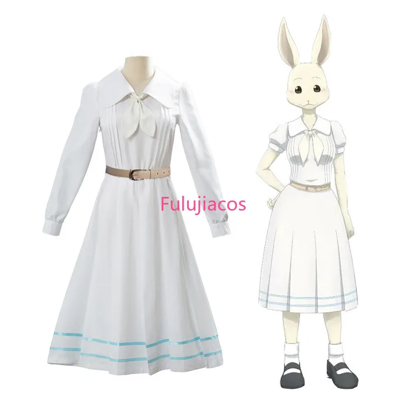 Fulujiacos Beastars Haru Cosplay Costume White Dress White Rabbit Haru JK Uniform Dress