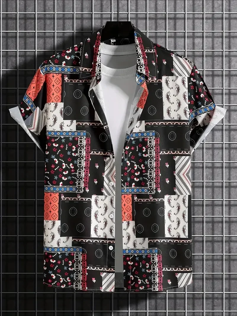 Palmshadow Cuban Camisa Men's Clothing Simple Hawaiian Print Poplin Shirt Business Holiday Everyday Outdoor Short Sleeve Shirt