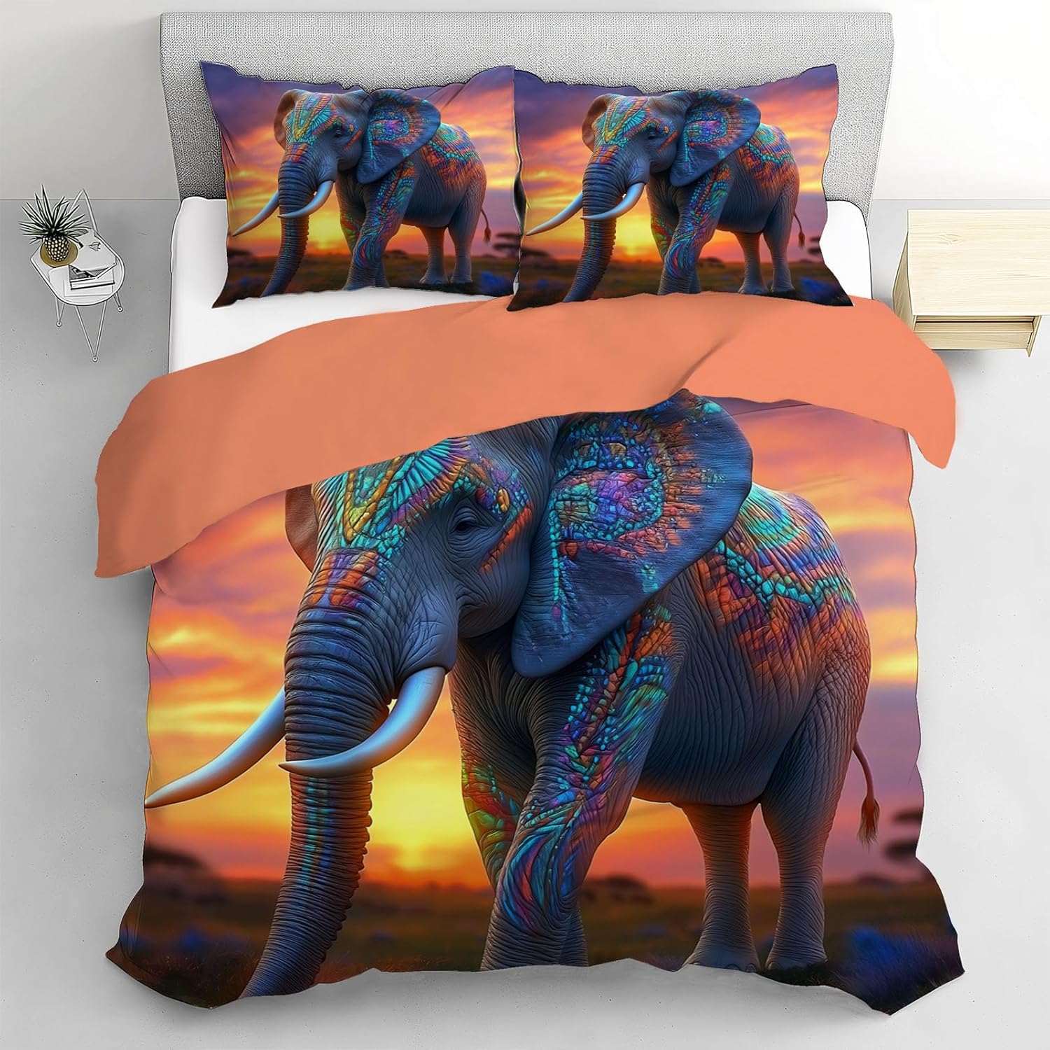 Постельный набор из 2 предметов с наволочкой с 3D-принтом животного слона, всесезонное одеяло, пододеяльник на молнии для детей и взрослых 135x200cm