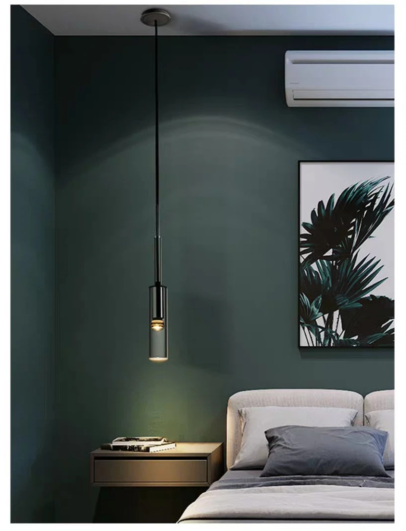 Постмодернизированная простая железная прикроватная люстра, красная длинная стеклянная лампа с одной головкой, прикроватная лампа для спальни, ресторана