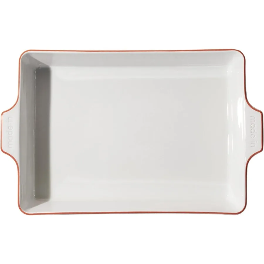 Посуда - Прямоугольная форма для выпечки - Красная оправа - Фарфор ручной работы - Профессиональные формы для выпечки - Франция