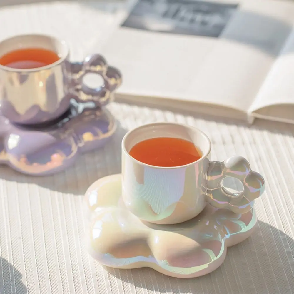 Посуда для напитков, керамическая чашка для кофе, милая кружка с ручкой и цветком, изысканная утолщенная чашка для питья чая для девочек