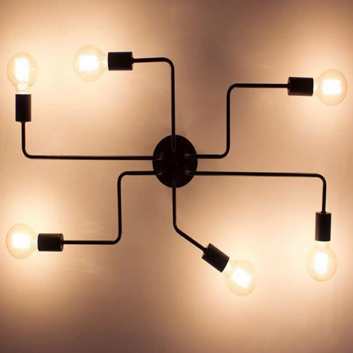 Потолочный светильник из железа с 6 насадками, промышленный винтажный светильник в скандинавском стиле, черная Современная потолочная ламп...