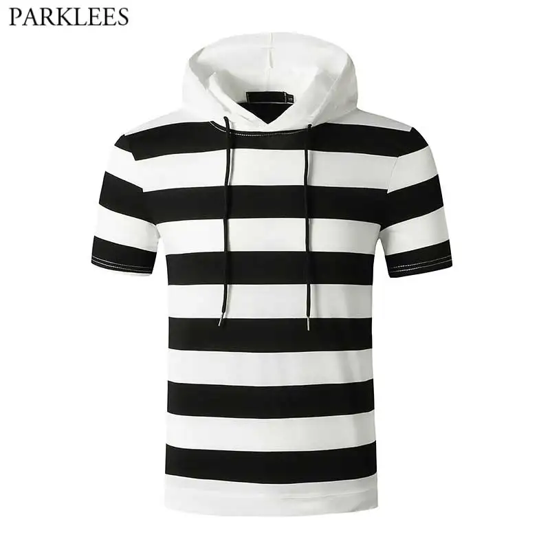 Модная полосатая Мужская футболка с капюшоном в стиле хип-хоп, 2021, Повседневная Толстовка с коротким рукавом, Мужская Уличная одежда в стиле...