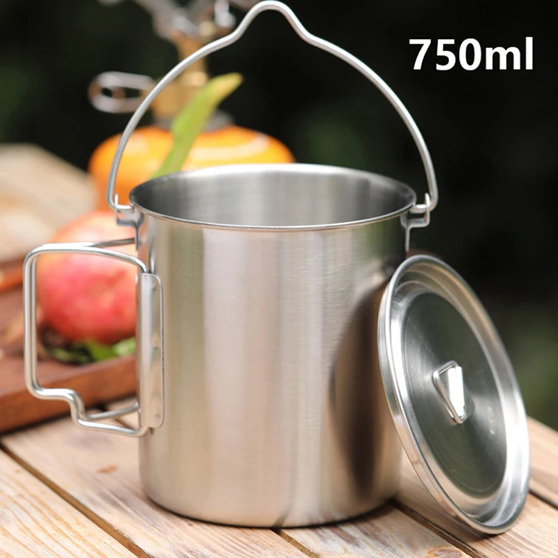 Походная кружка для воды из нержавеющей стали, кружка, кофейная чашка, складная ручка, портативная дорожная подвесная чашка с крышкой, Спортивная уличная посуда