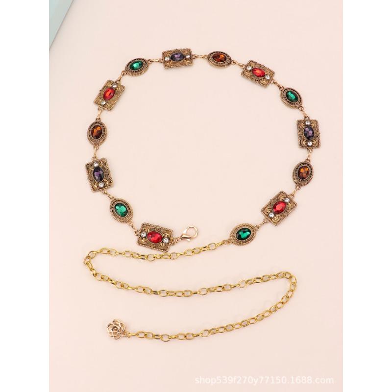 Поясная цепочка, аксессуар для платья, золотистая серебристая металлическая овальная гравированная цепочка, ремень со стразами, женский многоярусный дизайн