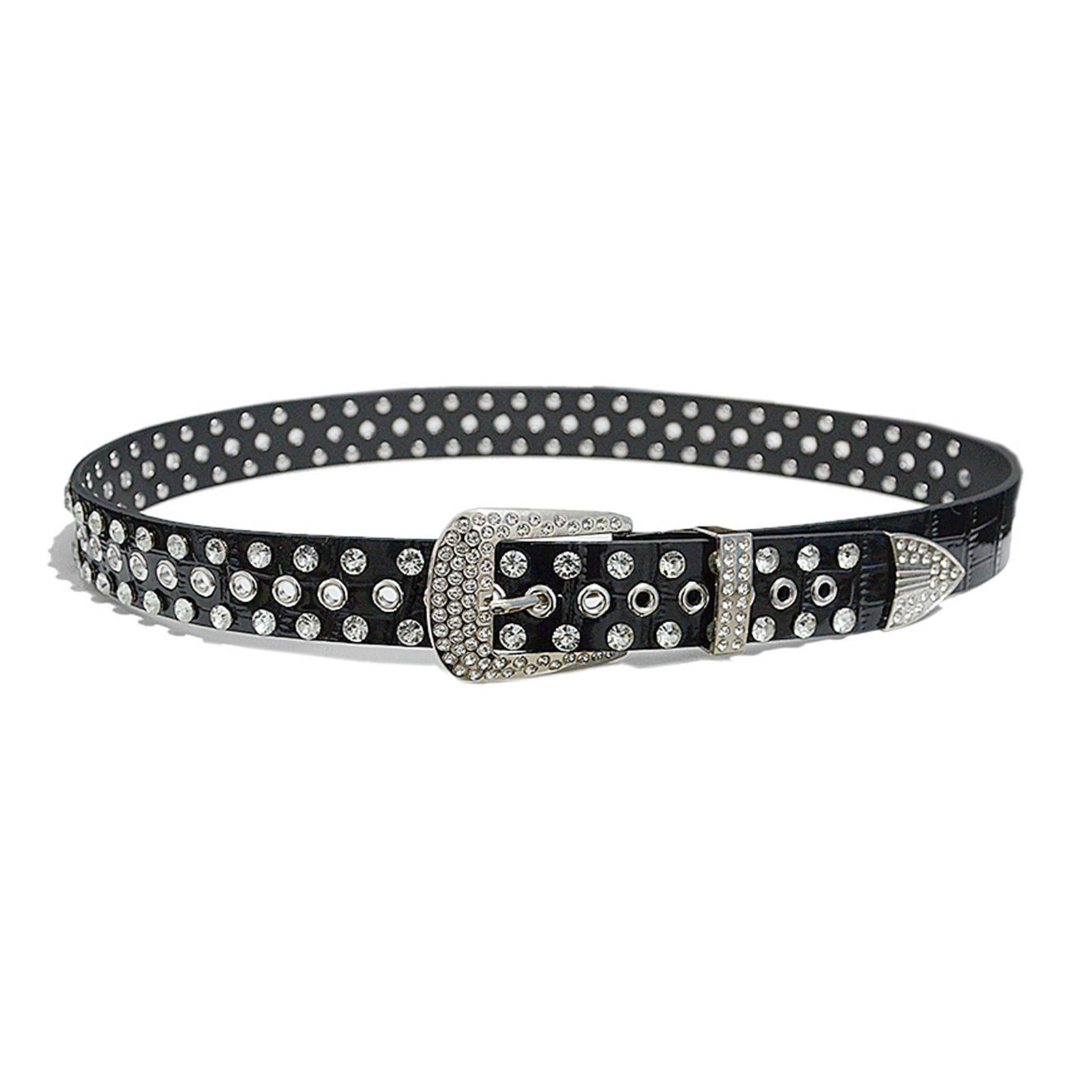 Поясной ремень в стиле панк для взрослых, роскошный поясной ремень, регулируемый ремень с пряжкой со стразами для ночного клуба чёрный