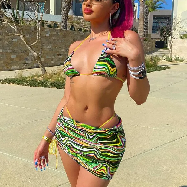 Colorful Printing Women Swimwear Sets Three Piece Halter Striped Neck Bikini Summer Sexy 2021 Trendy Laides Swimsuits, Blue,green