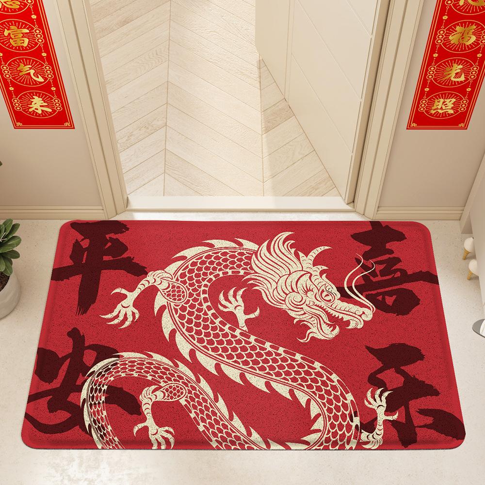Праздник Китайского Нового года Нескользящий шелковый коврик Добро пожаловать Входная дверь Грязестойкий Входная пыль Напольный коврик Дверной коврик 45*75cm