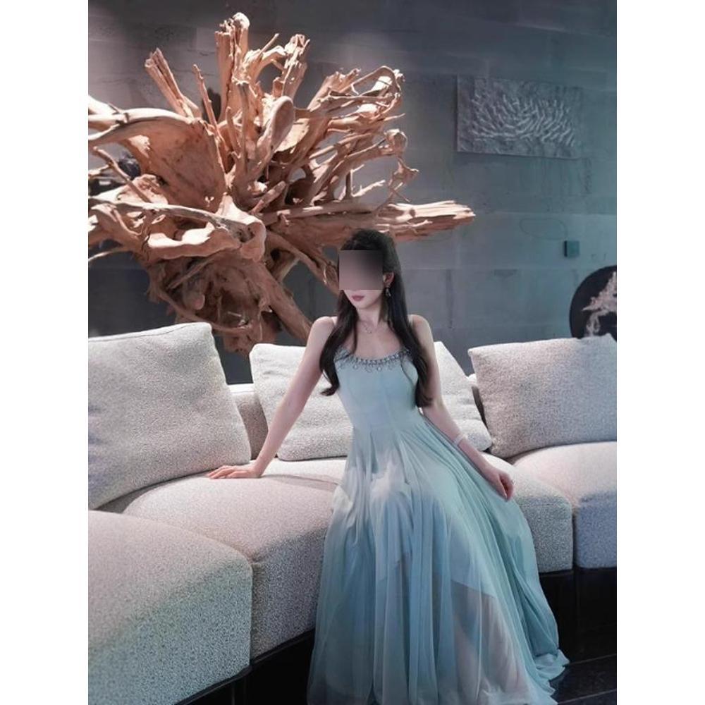 Праздничное мятно-зеленое платье на подтяжках выглядит супер хорошо, уникальное и красивое темпераментное платье в пол А-силуэта, женское летнее XL- (recommended 110-60kg)