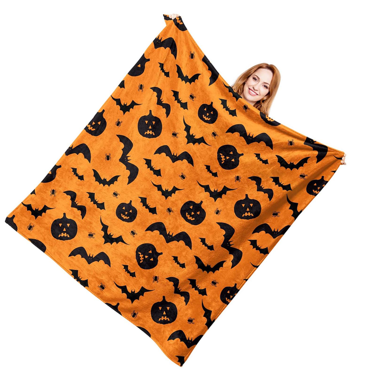 Праздничный плед на тему Хэллоуина, мягкая фланелевая ткань, для семейных посиделок, для мероприятий на открытом воздухе, можно стирать в машине, полиэстер A