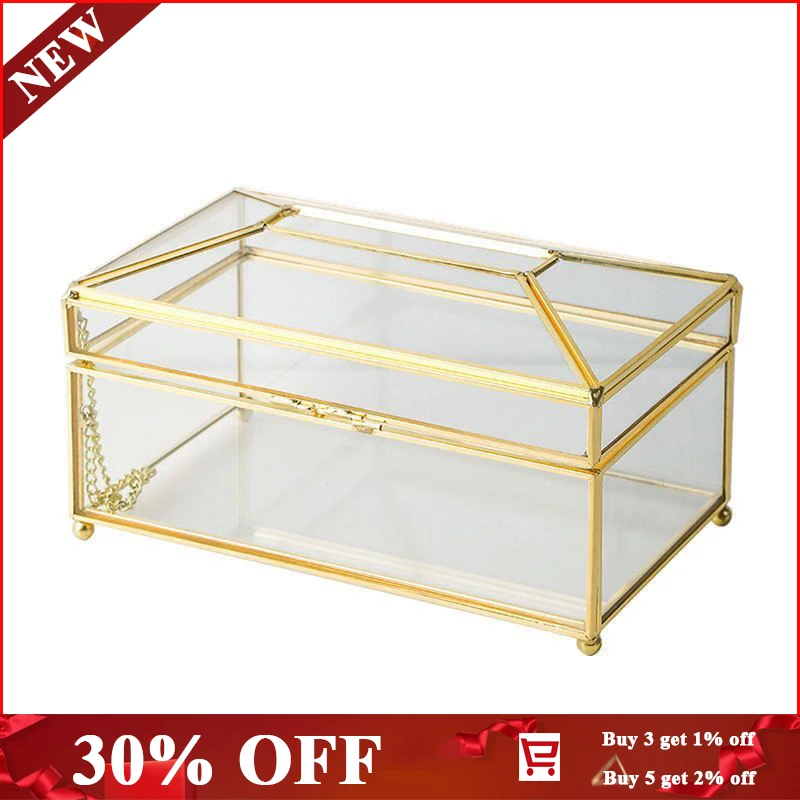 Практичный Золотой зеркальный бокс для салфеток, изысканный бокс для хранения салфеток из стекла, для макияжа, элегантный подарок для на де...