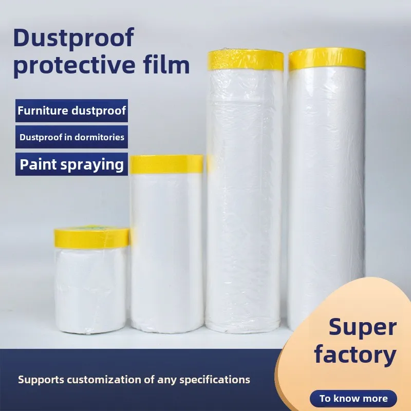 Предварительно скрученная малярная пленка, защита PE, тканевая лента для аэрозольной краски, автомобильная краска, мебель для гостиной, пыленепроницаемая