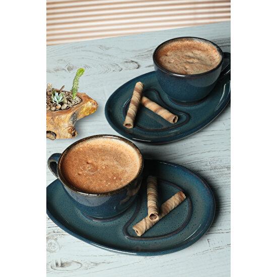 Презентационный набор чая Keramika Reactive Dark Blue Drip, 4 предмета, для 2 человек