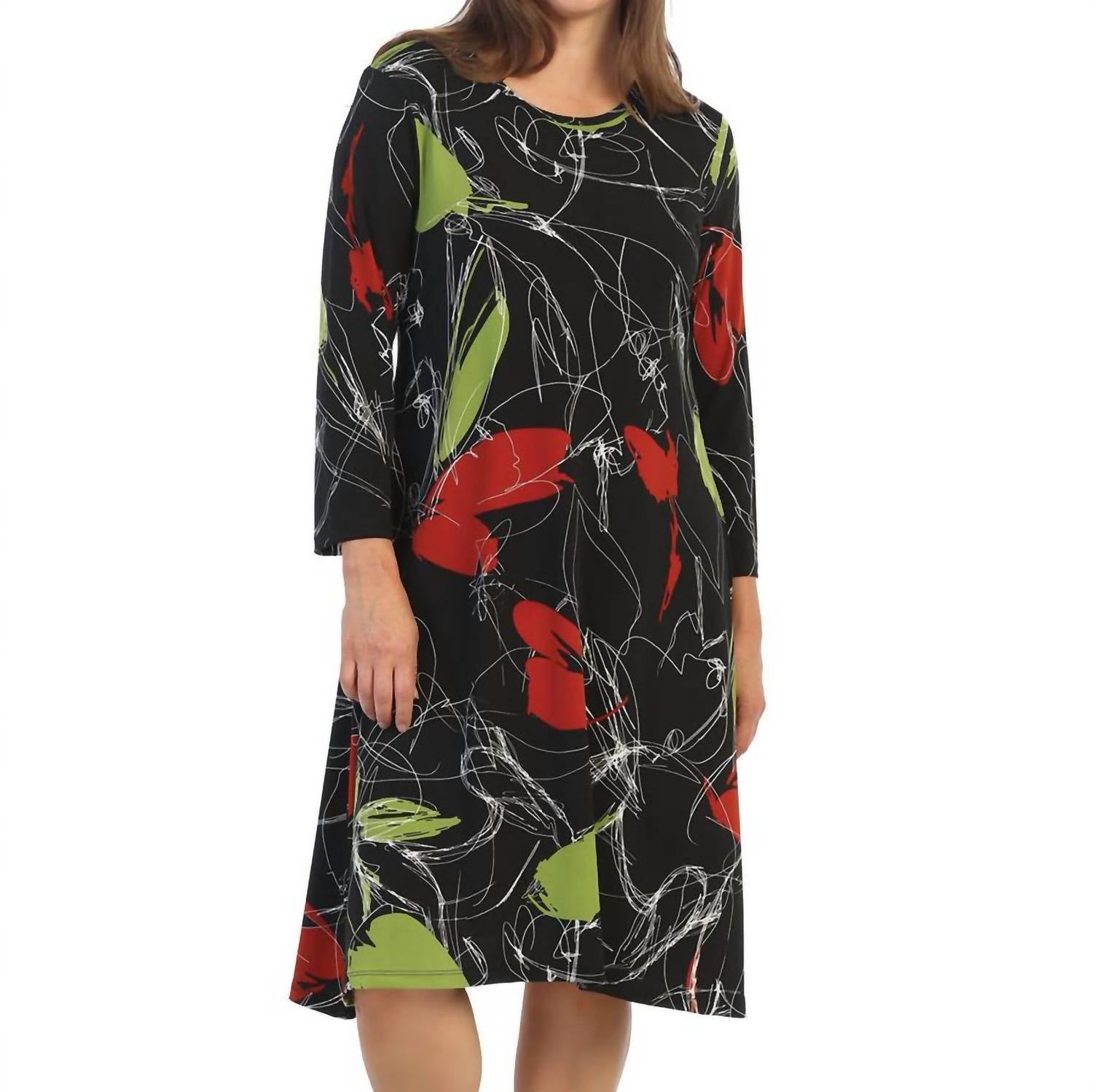 Прелестное черное платье-трапеция с разноцветным принтом Jess & Jane