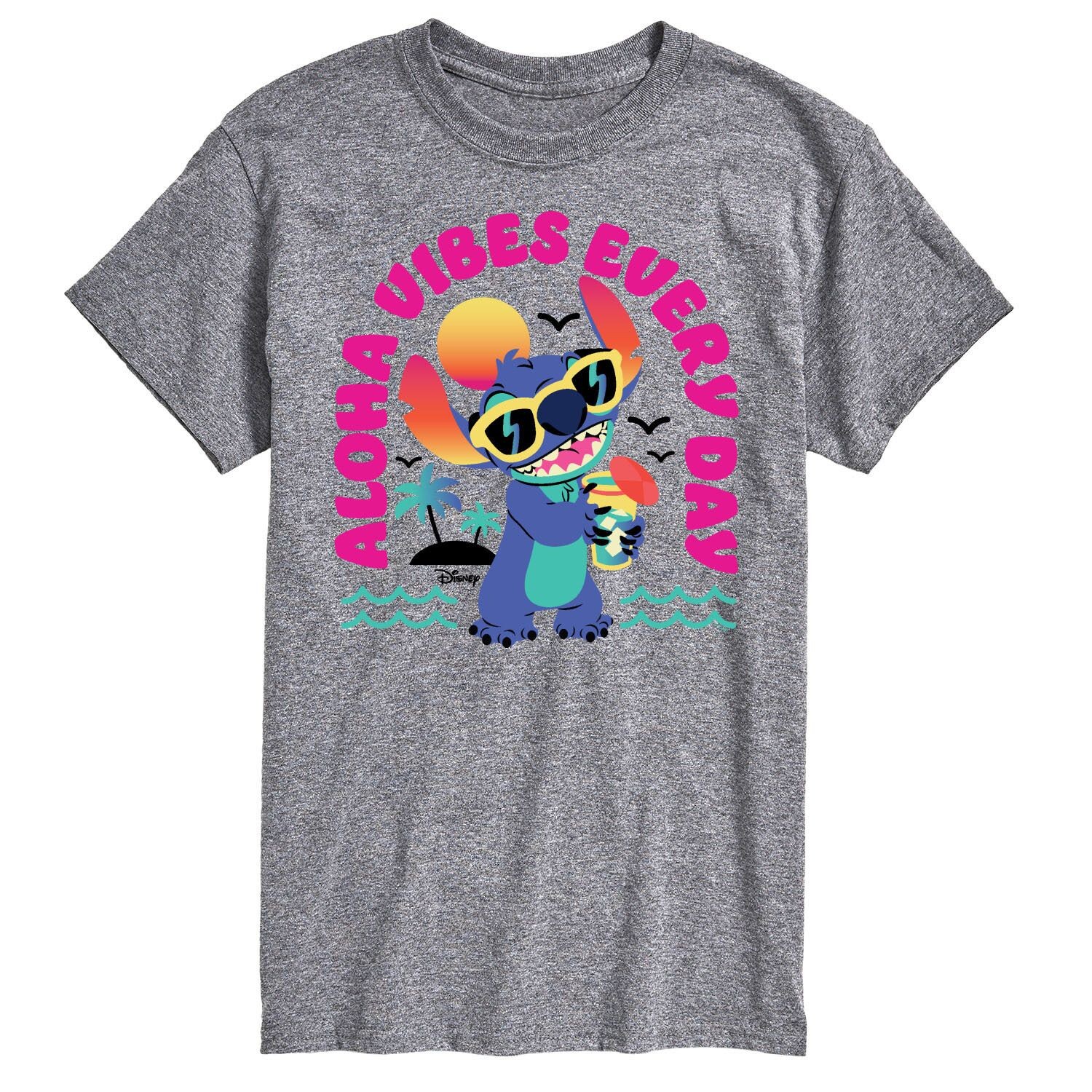 Футболка Lilo & Stitch Big & Tall Aloha Vibes с цветком на каждый день Disney, серый