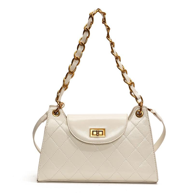 Премиальная вышивальная нить сумка-цепочка под мышкой женская 2025 новая универсальная ромбовидная цепочка модная нишевая на плечо мессенджер 28*5*16.5 белый