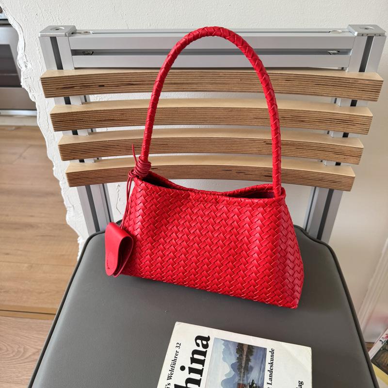 Премиальная нишевая дизайнерская плетеная сумка-подмышка, новая ручная простая повседневная наплечная сумка-ведро красный