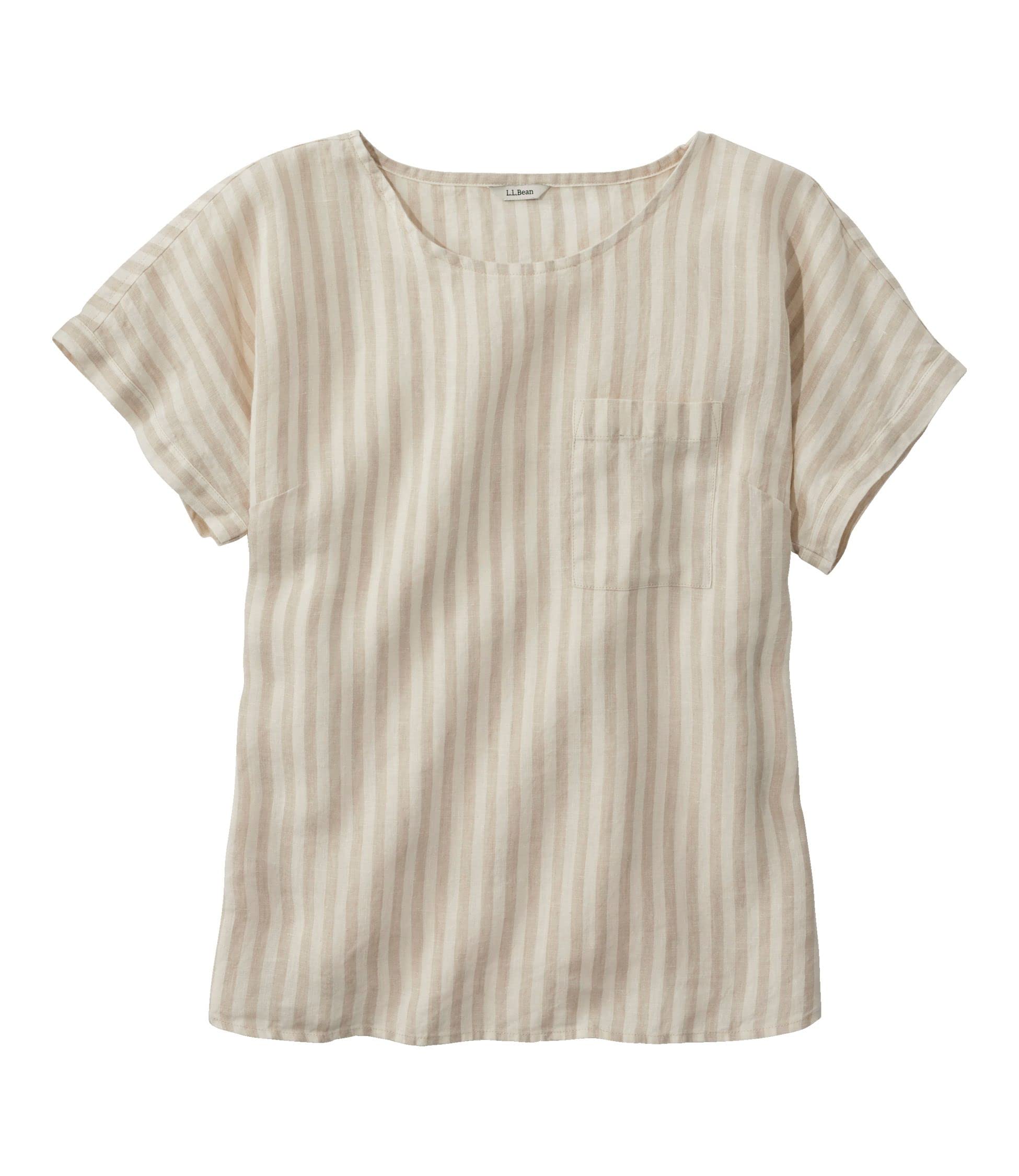 Премиальная стирающаяся льняная футболка с коротким рукавом, размер Япония, цвет ракушки, хаки, 1000132722, женская футболка L.L.Bean, полосатая, облегающая, маленькая, полоска, многоцветный,