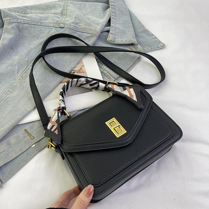 Премиальная сумка модная контрастная цветная шелковый шарф откидная сумка портативная на плечо мессенджер женская сумка чёрный