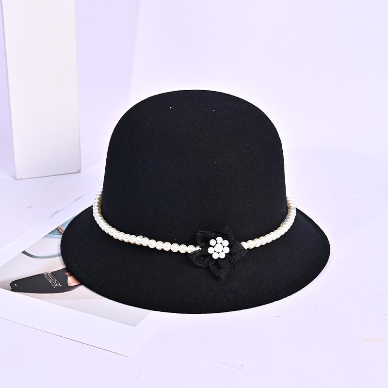 Премиальная шляпа-котелок в стиле знаменитостей, шерстяная, с куполом, с жемчужным цветком, шляпа с большими полями, детская Adjustable