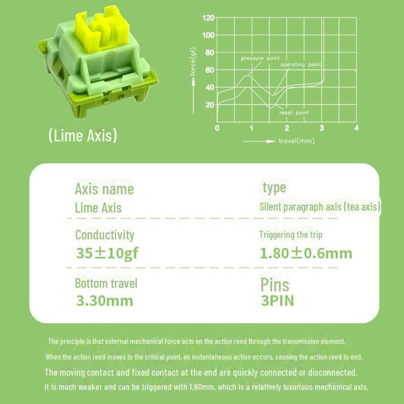 Премиальный бесшумный линейный кнопочный переключатель - кремово-желтый, персиковый, с возможностью горячей замены Tripod axis лаймовый